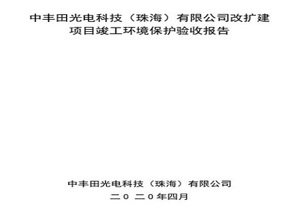 中丰田光电科技(珠海)有限公司改扩建项目环境影响评价信息 |